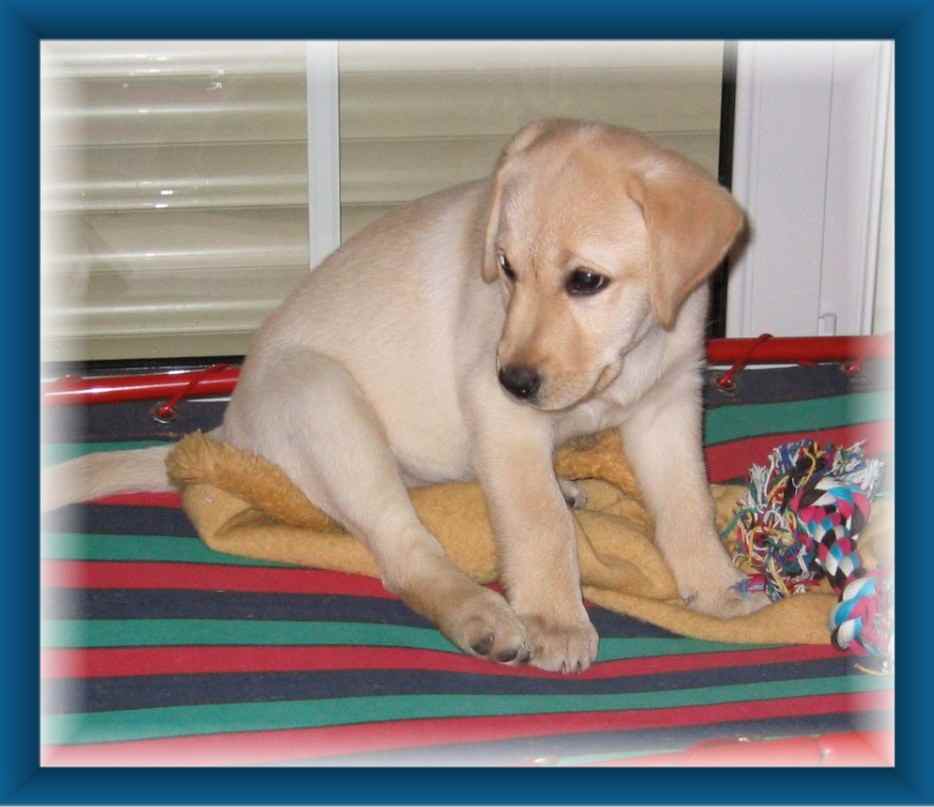 ...na jetzt kommt auch mal ein gelber Labbi... mein Geburtsname ist AMY und weil der meiner neuen Familie so gut gefallen hat, heisse ich auch heute noch so.... ...ich wurde als 6. Welpe geboren und wog 375 Gramm.... |