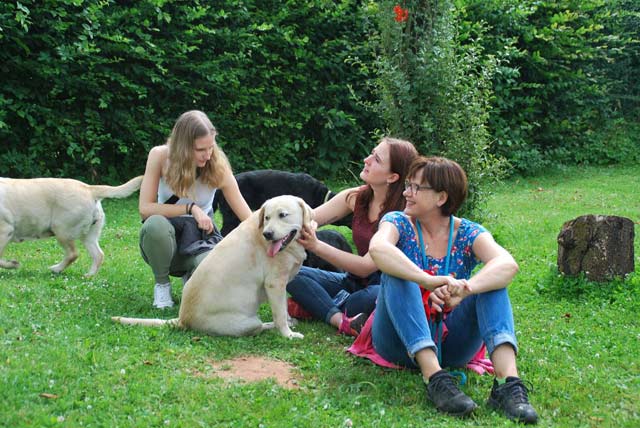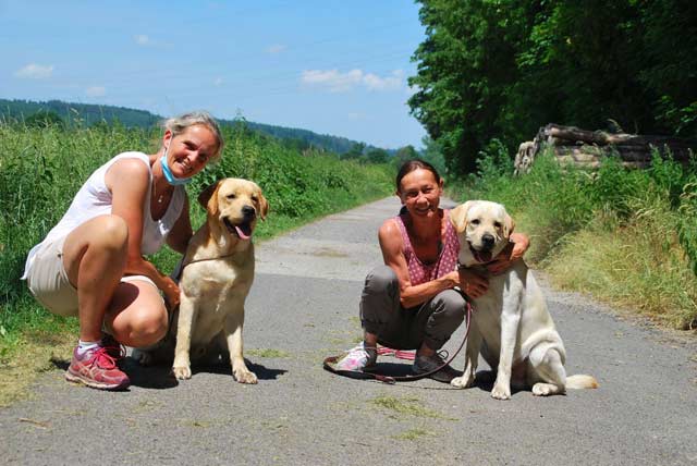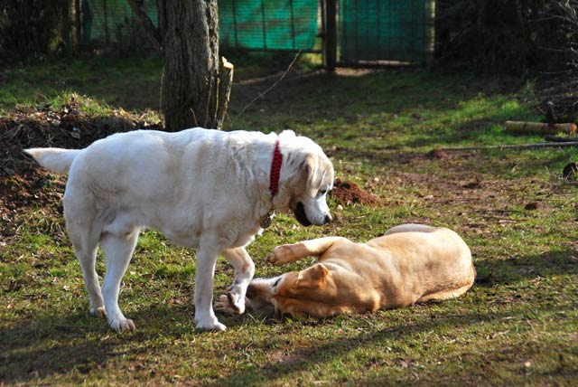 Flinn ( aus unserem F- Wurf ) und Morla ( M- Wurf ) haben mich besucht Flinn wird in diesem Jahr seinen 15. Geburtstag feiern und ich habe mich wirklich sehr gefreut ihn heute bei bester Gesundheit zu sehen. Morla ist die Schwester unserer Yellow und in diesem Wurf gab es auch nur diese beiden Mädchen. Sie haben sich beide unheimlich gefreut und sind auch heute noch eng miteinander verbunden. Es war sehr schön dass mich Regine heute mit den beiden besucht hat.....