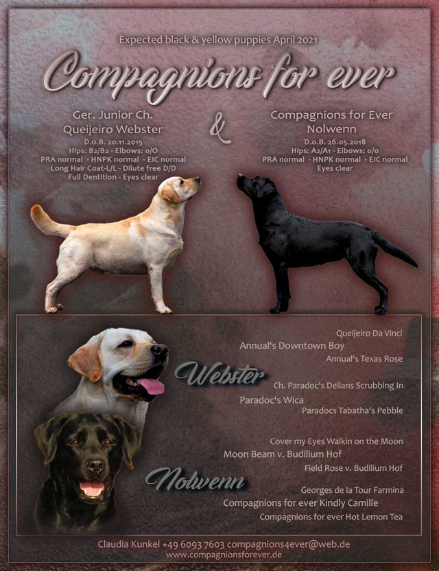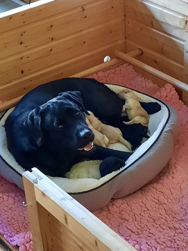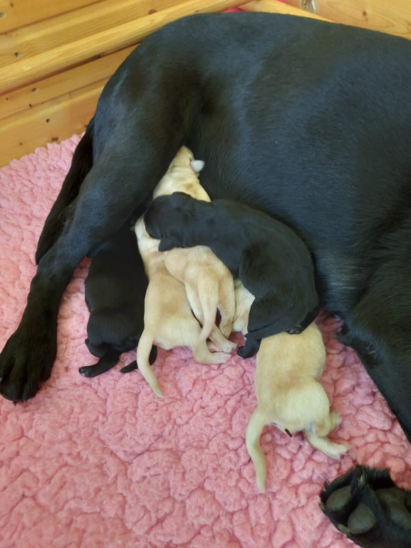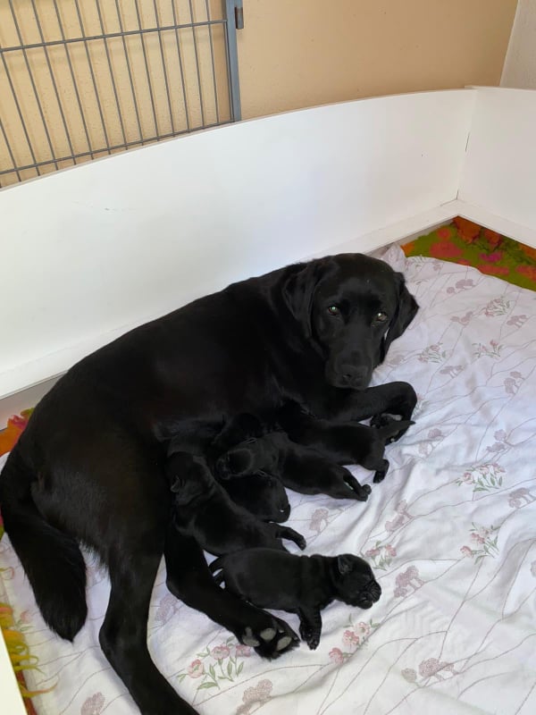 Heute wurden ( verfrüht ) die Welpen von Pina und Webster geboren, Wir freuen uns jetzt sehr über vier schwarze Rüden und eine schwarze Hündin.