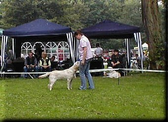 gute Fellanlage. Barcley errang in der Jugendklasse Rüden ein V3 : "11 Monate alter Rüde von vorzüglichem Typ. Sehr ansprechenden Kopf, sehr gutes Pigment, sehr gute Knochenstärke, gute Proportionen, sehr schöne Ober- und Unterlinie.Korrekte Winkelungen, bewegt sich gut. Gut ausgestellt. Sehr gute Fellanlage." Richterin: Frau Beate Ting.