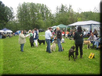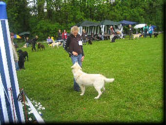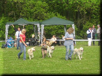 Morlin ( Bridget of Sheppard's Garden ) errang in der Jugendklasse ein V 3 ... 13 month old yellow , sweet temperament, nice head, soft expression, excellent pigmentation, level top line,and a wageling Ottertail, super coat that taughts to drop, excellent quarters, moved well, will have a nice future with a little bit of show training ...