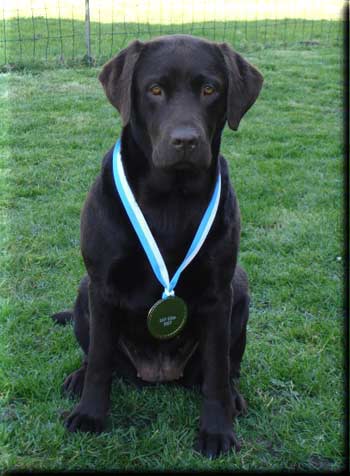 Außerdem gab es heute noch tolle Neuigkeiten aus Dänemark .... Hier der Richterbericht ...Beautiful young brown female pup. Well balanced, great head and expression. Good neck and body. Very good legs and paws. Good movements. Wonderful temperement. Beautiful brown colour.............