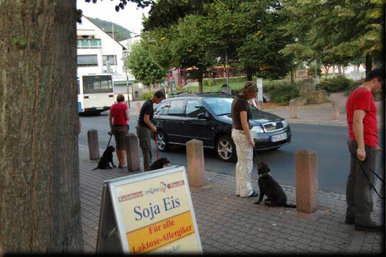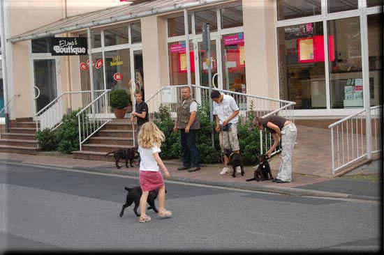 15.August 2007 Abschluß Welpenkurs In der letzten Stunde unseres Welpenkurses hat uns Herr Wissel in die Stadt geführt Alle haben sich von ihrer besten Seite gezeigt und man konnte sehen , wie schön die Hunde Vertrauen und Bindung zu ' ihren ' Menschen aufgebaut haben. Hier noch 2 Erinnerungsfotos für diejenigen die nicht mehr kommen können , wir werden sicher oft an Euch denken. Alle anderen treffen sich am nächsten Mittwoch wie gewohnt für den nächsten Kurs .