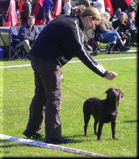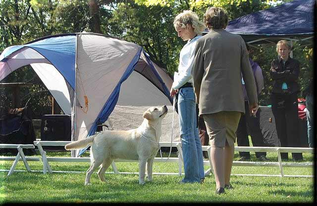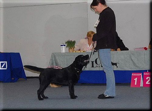 14.Oktober 2007 CACIB in Dortmund Richterin A. Verbeek de Neef ( NL ) Heute wurde unser Conner das erste Mal in der Jüngstenklasse ausgestellt , er bekam ein vv 2 und einen tollen Richterbericht ........lovely baby, full of quality, classic head with kind expression, good top line, good angulation in front and rear, excellent bone and feet, nice deep body for age, true Labrador coat, moves already well for his age, lovely temperament, excellent showman, he will have a great future......