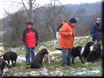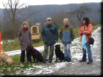 17. Februar 2007 Wesenstest Bei frühlingshaftem Wetter haben sich heute 8 Hunde mit ihren Menschen einem Wesenstest 'gestellt'. Begleitet und unterstützt wurden sie dabei von der Wesensrichterin Frau Andrea Rüter, für deren Kommen ich mich auf diesem Wege nochmals herzlich bedanken möchte. Auch ein großes Dankeschön an meine Welpenkäufer für ihre Teilnahme, einige hatten einen weiten Weg auf sich genommen um mit dabei zu sein. Alle Hunde haben den Test bestanden und eine schöne Beurteilung mit nach Hause genommen, ich habe mich sehr darüber gefreut.