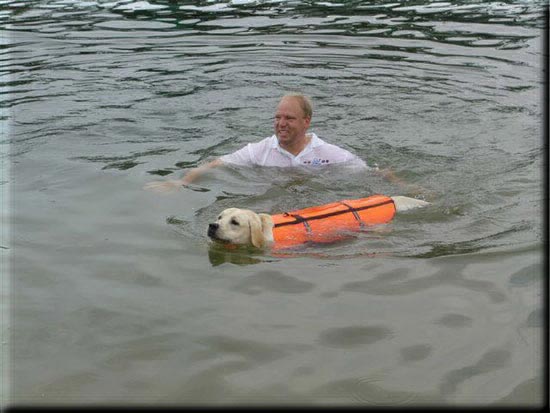 Flinn ( Final Fantasy Of Sheppard's Garden ) hat einen Kurs der besonderen Art besucht : Seine Hundeschule hat eine Wasserparty an einem Badesee veranstaltet und damit einigen Hunden das nasse Element ' näher' gebracht. Wer's nicht glauben will , hier kann man es sehen ........ auch ein Labrador hat manchmal ein Problem damit , wenn man den Boden unter den Füßen verliert... Aber jetzt klappt's