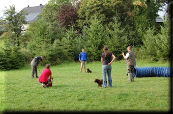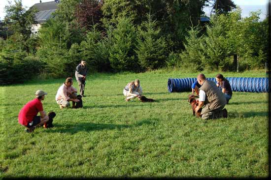 18.Juli.2007 Welpenkurs Seit dem 11.Juli besucht unser G- Wurf gemeinsam einen Welpenkurs , der von Herrn Wissel kompetent geleitet wird. Ich freue mich , dass alle Familien kommen können, obwohl einige sehr weite Anfahrtswege haben . Hier wird eine gute Grundlage gelegt für den Umgang Mensch / Hund und natürlich haben auch die Kleinen ihren Spaß . Also dann bis zum nächsten Mittwoch ....................