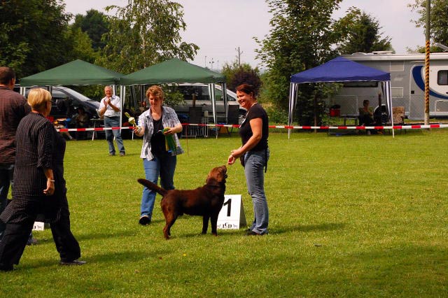 Spezial Rassehunde Ausstellung LCD in Bad Soden Unter dem Richter Richard Wiles ( GB ) fand heute bei tollem Wetter die erste ,von der Regional Gruppe Rhein Main , organisierte Ausstellung statt !! Das Gelände war wirklich schön und die Bewirtung ließ auch keine Wünsche offen und mit fast 100 gemeldeten Hunden waren alle Klassen stark vertreten ... Baker belegte in der Zwischenklasse Rüden den 4. Platz- Spooner erhielt in der offenen Klasse Rüden ein Vorzüglich - Kalypso bekam ebenfalls ein Vorzüglich in der Jugendklasse Hündinnen und einen schönen Richterbericht- und unsere Morlin wurde im Juniorhandling von Anna präsentiert ... eigentlich sollte Morlin auch in der offenen Klasse starten, mit ihrem rasierten Bauch ist sie aber im Moment nicht salonfähig ...