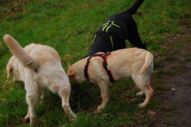 Allen Vorhersagen zum Trotz konnten wir heute unsere Wanderung ohne einen einzigen Regentropfen genießen. Mit Spencer, Gaia, Jule, Kitty und Dusty hatten wir einen recht entspannten Spaziergang ...Gaia war stets bemüht ihren Kontakt zu mir zu halten ...Jule fand hie und da eine vielversprechende Spur die kurz verfolgt und auf Ruf auch wieder verworfen wurde, Kitty kontrollierte immer mal wieder alles und jeden, Spencer fand mindestens zwei Flaschen