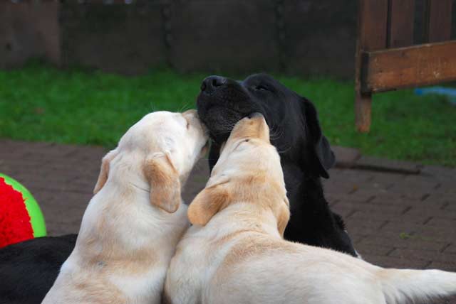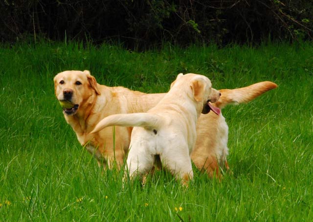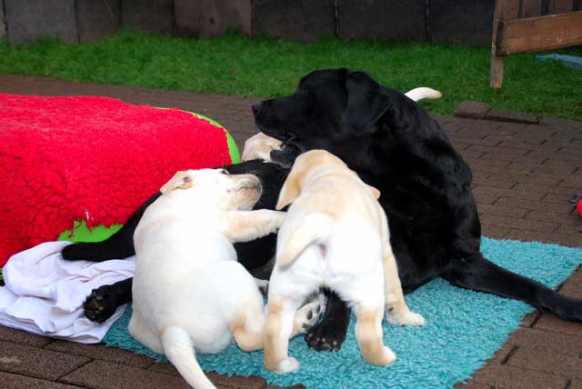 N-Wurftreffen Vor 4 Wochen hat uns unser N- Wurf verlassen und heute haben sich Nele, Hermine und Fine wieder gesehen. Alle drei haben sich prima entwickelt und halten ihre Familien und vierbeinigen Mitbewohner ordentlich auf Trapp.Die kommende Zeit wird sicher nicht langweilig und der Weg zu einem erwachsenen und wohlerzogenen Hund ist noch lang ... Ich wünsche euch allen noch viel Freude mit den Zwergen und bin heute schon gespannt wie sie sich bei unserem nächsten Treffen zeigen
