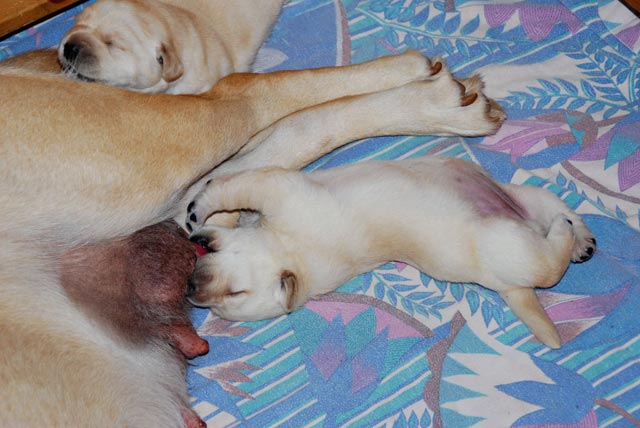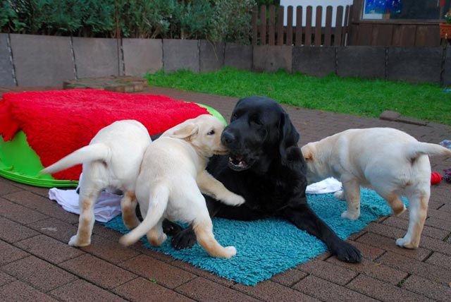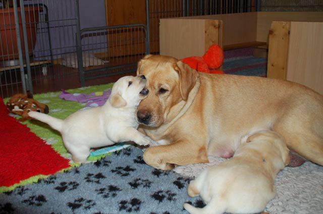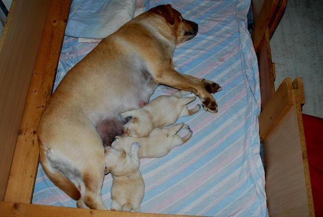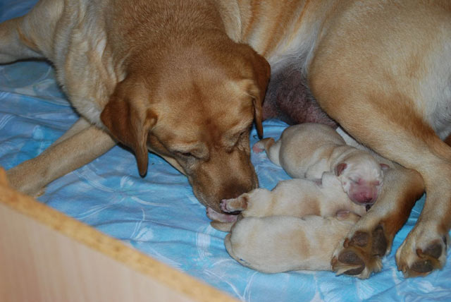 Unser N- Wurf wurde am 9. Oktober 2015 geboren, wir freuen uns sehr über drei gelbe Mädchen